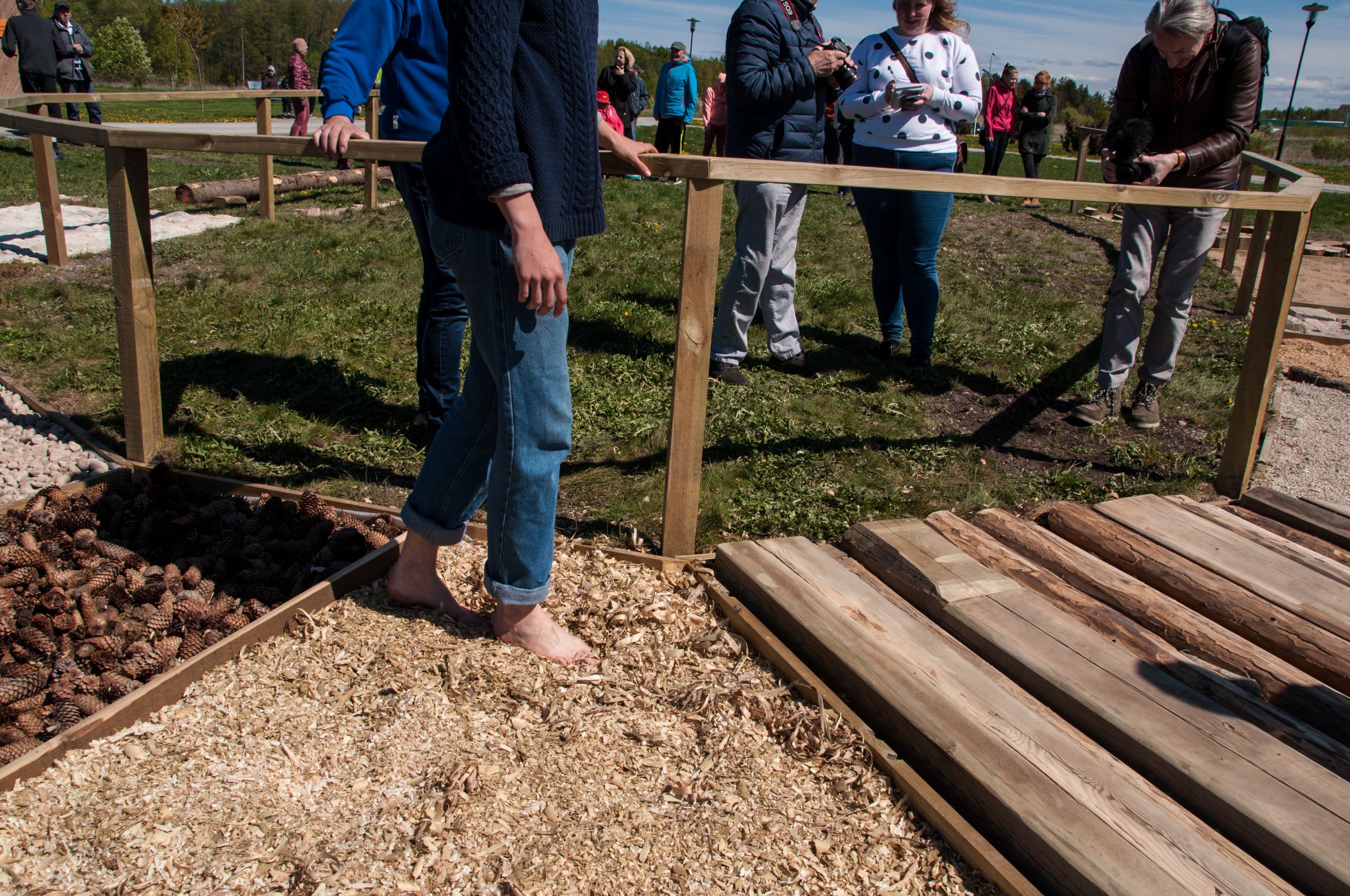 30 meetri pikkune rada koosneb 13 erineva materjaliga osast ja on poolkuu-kujuline. Rajal tuleb paljajalu kõndida üle kännu, kivide, sambla, väikeste kividega ümbritsetud kändude, läbi käbide, multši, puulaastude, kahe erineva kruusa, saepuru, kivide, liiva ja erineva kõrgusega puutükkidega.