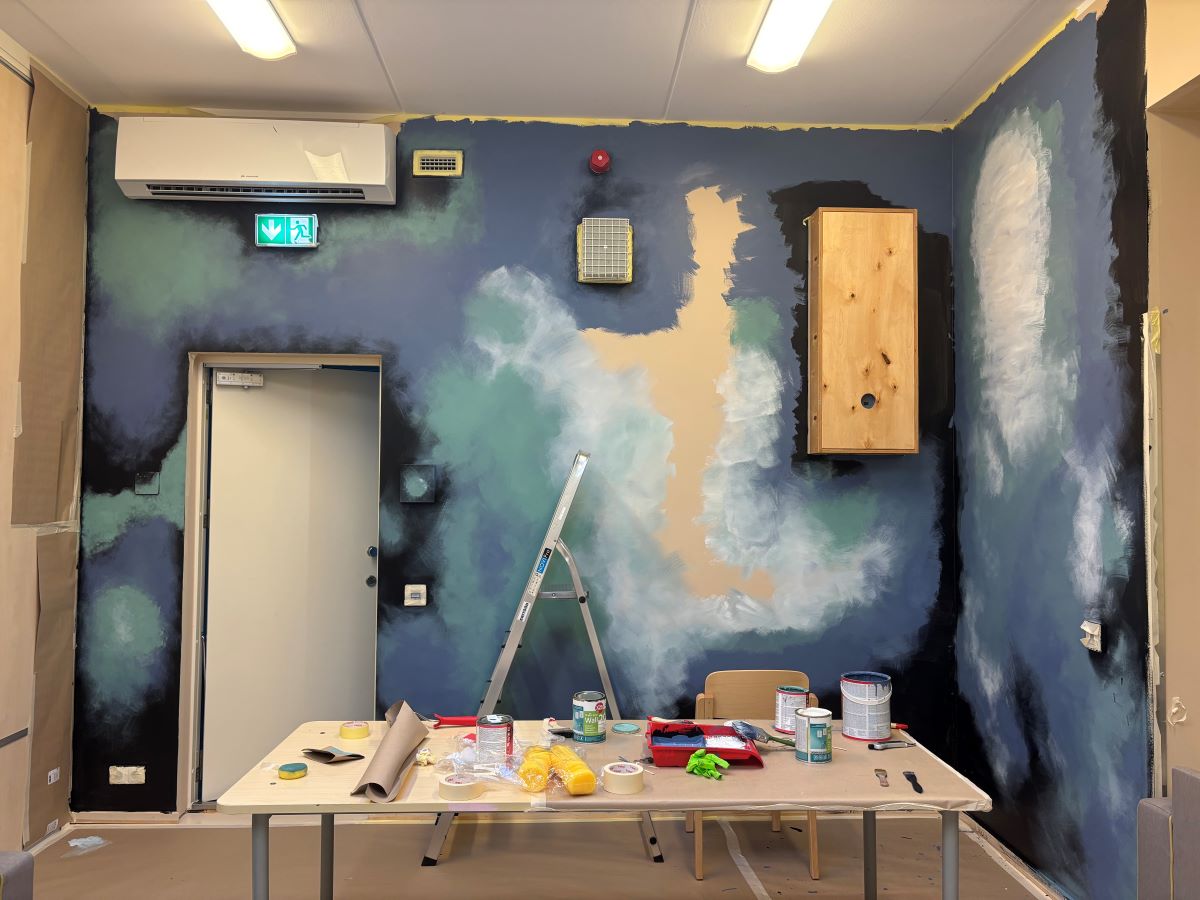 Projekti kaasasime kolm noort kunstihuvilist ning lisaks tuli appi minu tütar, Tartu Kunstikooli õpilane ja juba iseseisev kunstnik. Lapsed polnud varem nii suure pinnaga töötanud. Juba esimesel päeval selgus tõsiasi, mida nad ei osanud oodata: kõige keerulisem ei ole mitte maalimine, vaid ettevalmistus. Teipimine, pindade katmine, planeerimine – see kõik oli nende jaoks uus ja üllatavalt aeganõudev. Töö, mis väljaspoolt tundub “lihtsalt katame seinad ära”, osutus keerukamaks, kui nad arvata oskasid.